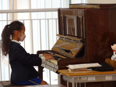 19日は,3年生の有志が,ピアノ演奏やリコーダーそしてカップス等の腕前を
