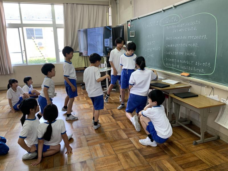 同じ面積を求める単元で、互いにメリットを感じて交流していました。