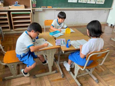 低学年も、自分で場所や問題を選んだり、一人でやるか友達と一緒に考えるか、その時間ごとに考えています。・・・つづく