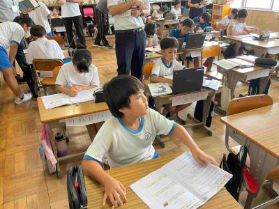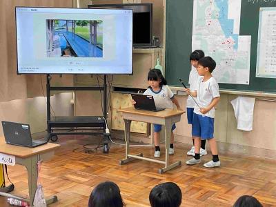 4年生は社会の調べ学習中。友達と話し合いながら進めています。