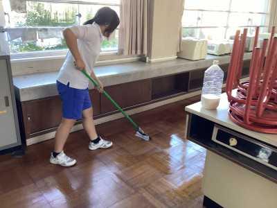 本日8日の6時間目に、学校のワックスがけを行いました。