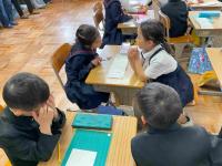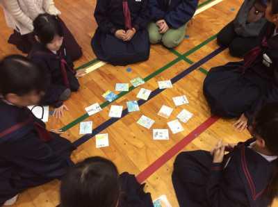 3年生は「片山津かるた」についての発表をしました。ポスターの紹介とオリジナル片山津かるたを使ってかるた大会をしました。保護者の方にも入ってもらい、大盛り上がり!グループ