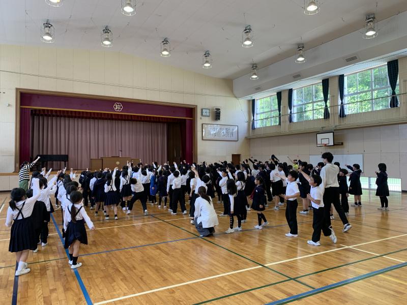 3年生が体育の時間に作ったダンスを、全校のみんなに披露しました。