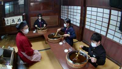 5年生は21日に、片山津温泉の足湯掃除をしました。