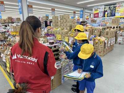 実際にお店の中を見学し、どんな商品が置いてあるのか見ることができました。お客さんにもインタビューして、お店で買っているものを聞いてみました。