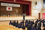 6日、新学期がスタートしました。まず、新任式で8人の先生方をお迎えしました。6年生の代表児童がお迎えのあいさつをしてくれました。とても立派な態度ですばらしいあいさつでした!