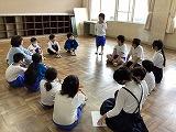 今回は、6年生が考えた遊びを楽しみました。「だるまさんがころんだ」や「ハンカチ落とし」「ジェスチャーゲーム」など、グループごとに楽しんでいました。