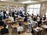新任式では、8名の職員を迎え、児童代表の6年生がお迎えの言葉を述べました。