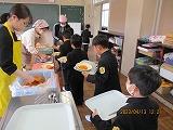 初めての給食を目の前に、「おいしそう!」とみんなにこにこ。ほとんどの子が残さず食べることができました!