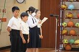 6日、新学期がスタートしました。まず、新任式で8人の先生方をお迎えしました。6年生の代表児童がお迎えのあいさつをしてくれました。とても立派な態度ですばらしいあいさつでした!