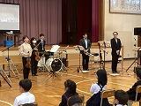 5時間目は、全校児童全員がバイオリン、ビオラ、トランペット、ファゴット、ドラムによる「情熱大陸」や「ボレロ」の演奏を楽しみました。楽器の説明やオーケストラについてのお話も聞くことができました。