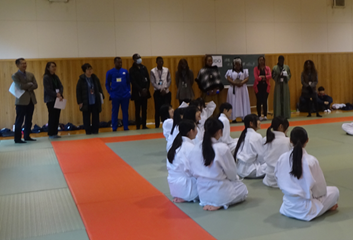 中央アフリカの6か国から9人の視察団が「令和の日本型学校教育【BE THE PLAYER】」を学ぶため本校を訪れました。全学級の授業を参観し、2年生と一緒に日本文化(折紙・百人一首・柔道)に触れた後、授業改革についての説明と質疑応答を行いました。アフリカの学校関係者の自国の教育を良くしたいという熱意を強く感じました。
