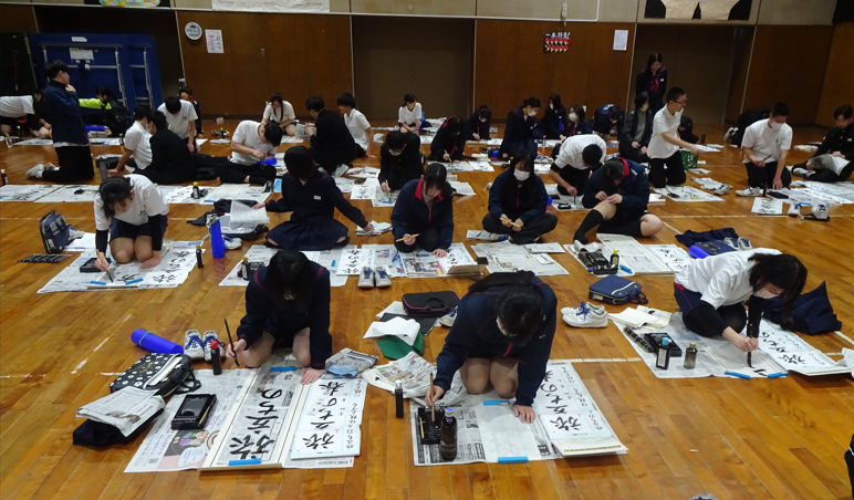 恒例となっている「書初め」を本年も全学年で行いました。1年の抱負に繋がる言葉を認め、新年をお祝いしました。特3年生は講堂に集まって認めています。