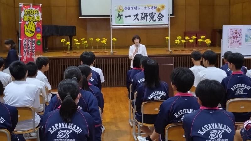 加賀保護区保護司会の「社会を明るくする運動」ケース研究会が開かれました。保護司25人の方に講師となっていただいて、犯罪や非行を防ぐための行動について話し合いました。内容は「万引き」や「特殊詐欺の受け子」の事例をもとに、犯罪に巻き込まれないために取るべき行動についてグループ対話を行い発表し合いました。