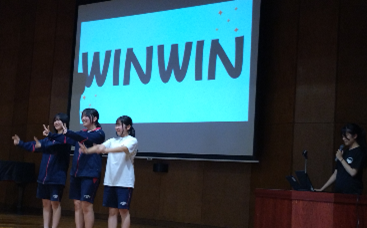 今年の体育祭スローガンは「WINWIN」です!!このスローガンは、体育祭が好きな人も苦手な人も、勝敗にこだわらず、全員が楽しんで、思い出に残る1日にしてほしいという思いから、自分も相手も勝つ、お互いに満足できるという意味がある「WINWIN」にしました。私達執行部は全員が楽しみ、笑顔で終えられる「WINWIN」な体育祭を目指していくので、片中生みんなで最高な体育祭をつくっていきましょう。
