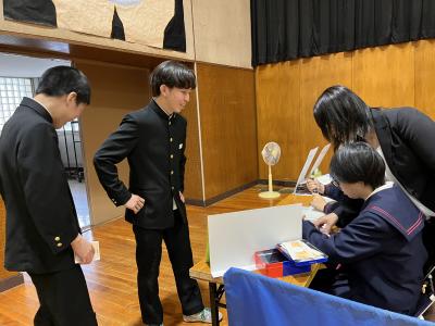 昨日、北國銀行大聖寺支店より徳野さんと高田さんにおいでいただき、6月29日(木)に実施する「起業に関する授業」の打ち合わせをしました。スワトンカンパニーを立ち上げるにあたって、3年生には、「起業するにはどうすればいいのか。」、「サポートをどのようにして受けたらいいのか。」、「利益を出すこと、資金を借りること。」など、大まかなことを理解して欲しいと思っています。この部分は学校では教えきれないところです。