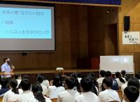 本日、5限目。3年生を対象に『夢授業 第一弾』が開催されます。『夢授業』とは、本校の総合的な学習の時間での取り組みで、キャリア教育を進めていくものです。
