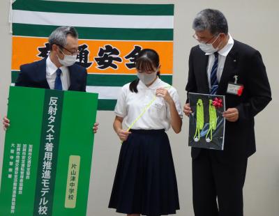 最近は夕暮れも早くなり、下校時には真っ暗になっています。運転者の視界も悪くなるのがこの夕暮れ時です。生徒はくれぐれも交通安全に気を付けて下校しましょう。勿論、安全タスキの着用を。教職員は、出退勤時、車の運転には十分気を付けてください。