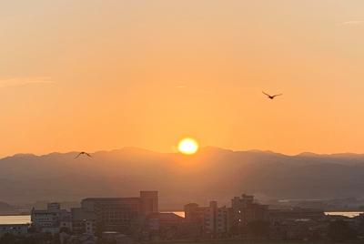 今朝の太陽は、金メダルのように輝いていました。この連休中日本選手団の活躍が多くみられました。「頑張れニッポン」