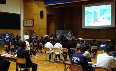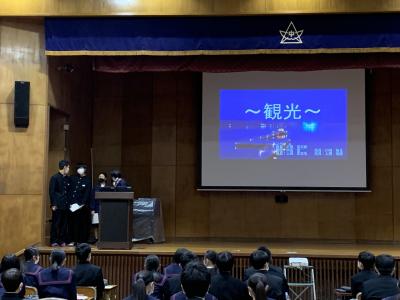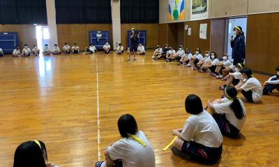以前、本校の2年の生徒2名が、町で倒れていたおばぁちゃんを助けた話をしたと思いますが、あれから消防署の方からもお礼の挨拶がありました。この勇気をぜひ全校生徒に知らせたいと思い、2名の生徒の善行を終業式前に紹介しました。その後、2人の生徒にその時の思いを話してもらいました。その時の状況やおばぁちゃんを発見してその場に走って行ったこと。意識がなく現場にいた方と一緒になっておばぁちゃんに声をかけ続けていたこと。その一言一言がぐっと重みのある言葉。その中でも「おぱあぁちゃんの命」という一言に会場の空気が「ギュっ」となりました。勇気ある行動、そして勇気をもって全校生徒の前で話してくれたこと。この2人の生徒に心から感謝しています。