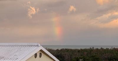 今朝は雨。空の一部に晴れ間はあります。雲も早い流れに乗って移動しています。