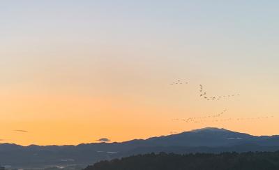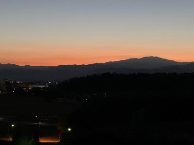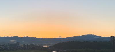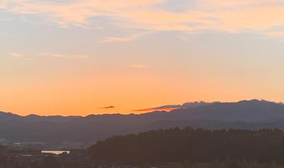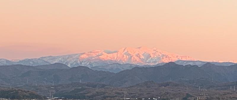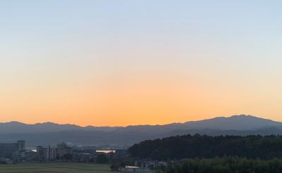 今朝は雲一つない空。白山のシルエットも素晴らしいです。