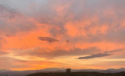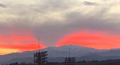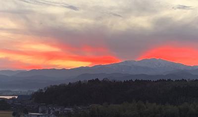 白山が燃え始めました。思わず噴火か?と思うぐらいの赤い光が。