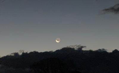 今朝の三日月。ちょっとぼやけていますが、スッとした姿がりりしく感じます。