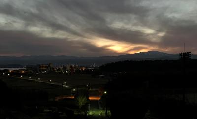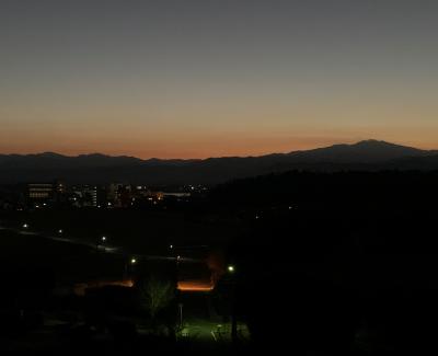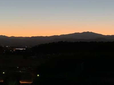 夜明け前の様子。今から太陽が出てくるぞというこの時間が、一日で一番落ち着いているのではと感じます。大自然のエネルギーが湧きだしてくるような、そして周りの空気も、木々も静かにその瞬間を今か、今かと待っているようなこの時間。やる気が一番湧いてくる時間でもあります。