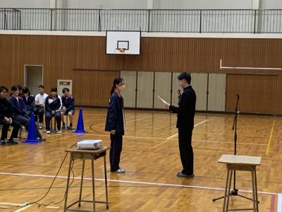 生徒会長の発案で、全校集会の後、「じゃんけん大会」で片中王を決めました。