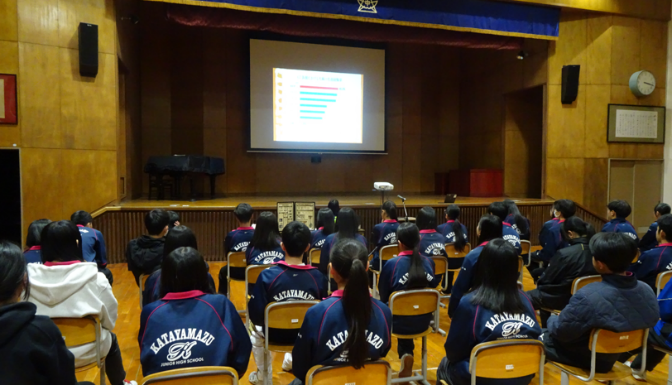 南加賀保健センターの小堀さんを招いて、薬物乱用未然防止と乱用の根絶に向けて薬物乱用防止教室を開きました。オーバードーズのお話しを中心に、最近広まりつつある若者の違法ドラッグの恐ろしさについても触れていただきました。様々な薬物の標本などを展示しながら具体的なお話しでとても勉強になりました。