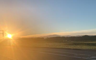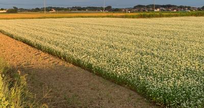 今朝は校舎の上には全く雲はなく、空きらしい青空のもとさわやかな朝を迎えています。学校周辺の畑には、真っ白なソバの花が満開です。