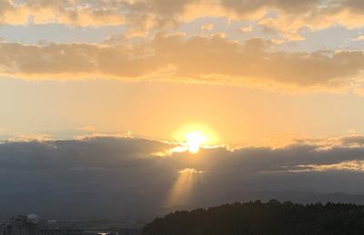 今朝も雲が多めの朝を迎えましたが、スーッと雲が流れていきました。でっかい太陽が昇ってきました。今日もいい天気のようです。