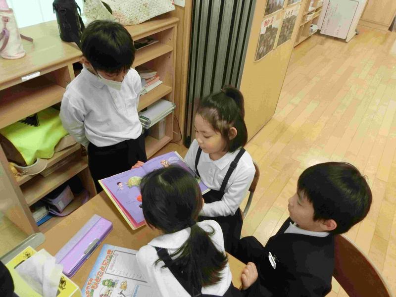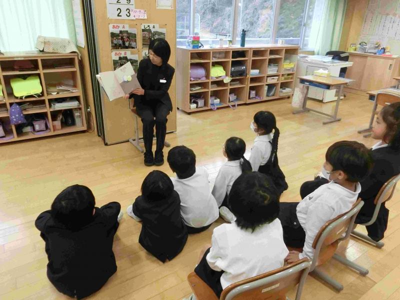 1・2年生は「かっくん」「やってみた」の読み聞かせ。