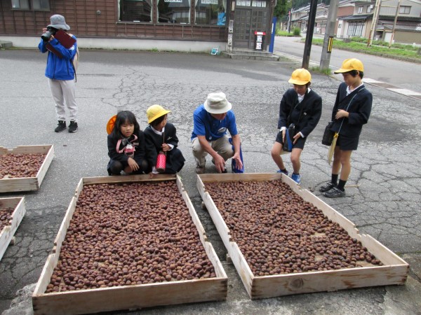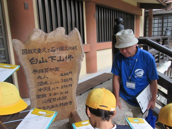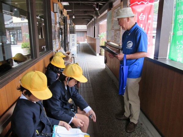 さて、そんな天候にも負けず、今日は5年生たちが総合学習で吉野工芸の里におじゃましてきました。吉野工芸の里では「白山麓のいしずえ展」を見学させていただきました。その名の通り、白山麓に伝わる様々な伝統工芸について、貴重な資料などを見ることができます。