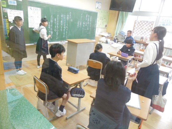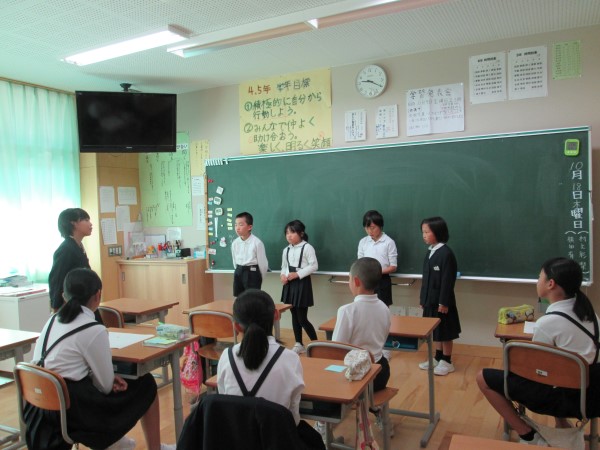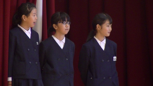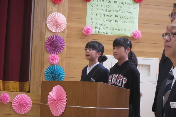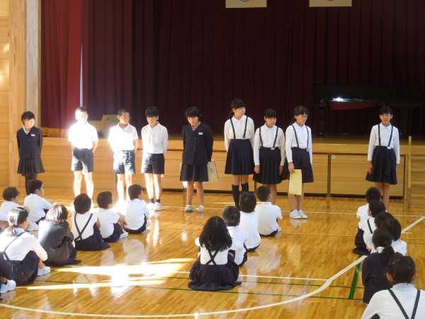 4年Yさんと5年Tさん、6年生からすでにしっかりバトンを受け取って、在校生コンビで堂々と報告をしてくれていました。頼もしい二人の姿でした。