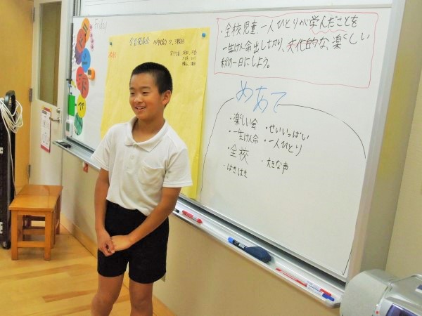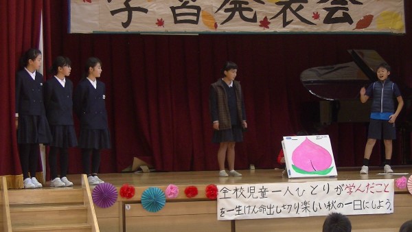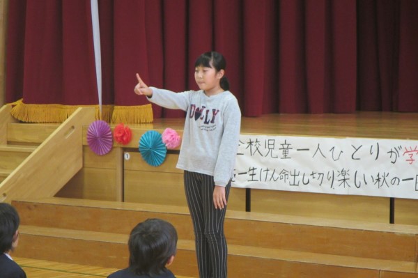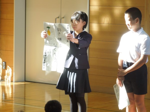 今日の総合司会は、4年生のSさん。バシッと力のこもった声が出ています。