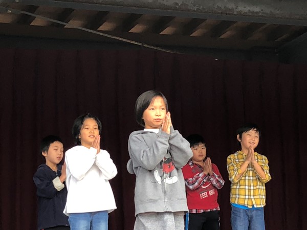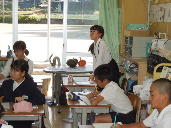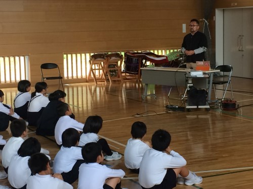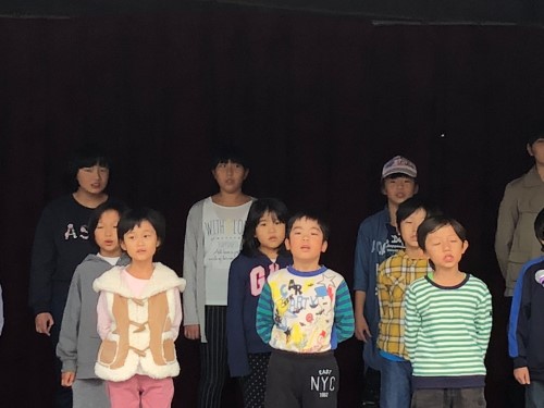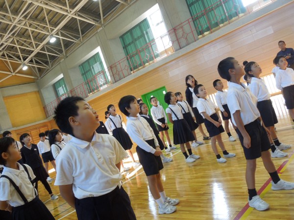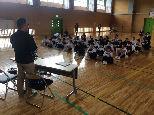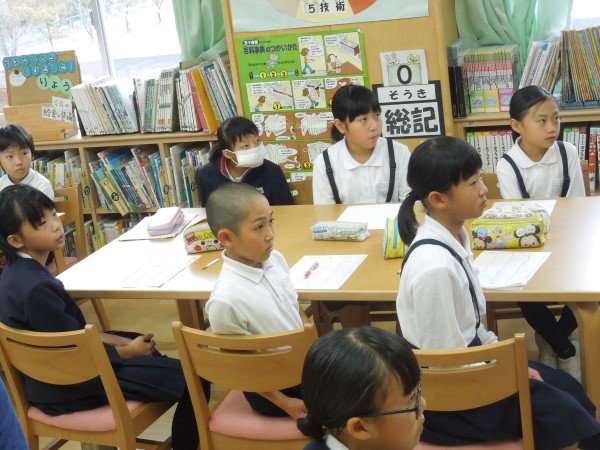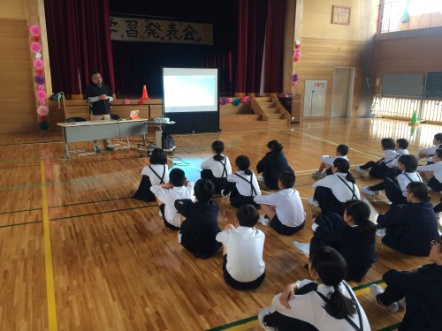 いっしょうけんめい聞いている下学年の河内っ子たち。6年生の作ってきてくれたものを感じ取っていたようです。