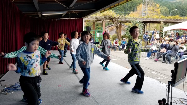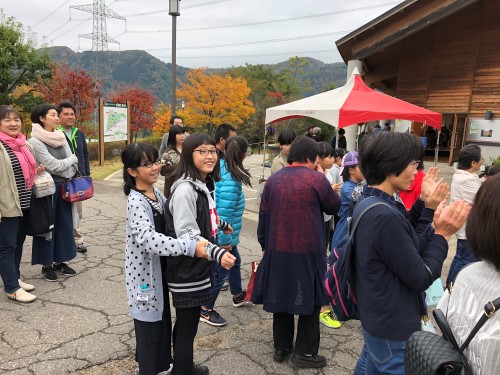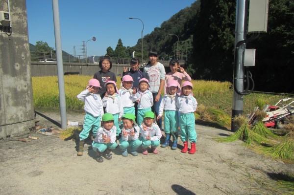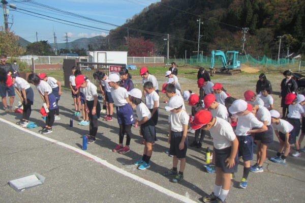 練習を見終えたこども園のみなさんは、大きな声で「ありがとう!」「がんばってください!」とあいさつをしてくれました。河内っ子たちも「どういたしまして!」「さようなら!」とあいさつを返していました。思わず笑顔になる、すてきな光景でした。