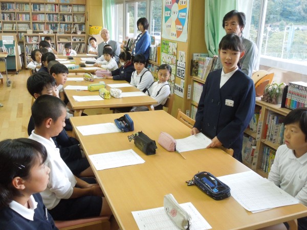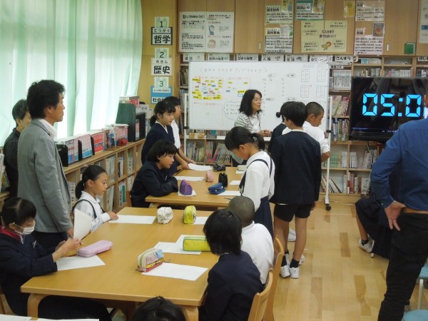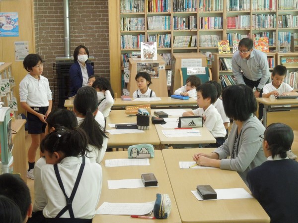 聞き手を意識して、自分の発表が相手にどう伝わるかを工夫しながら…というのが今の小学校の国語では大切にされています。3年生たちは緊張しながらも、いっしょうけんめい発表をすることができました。