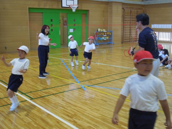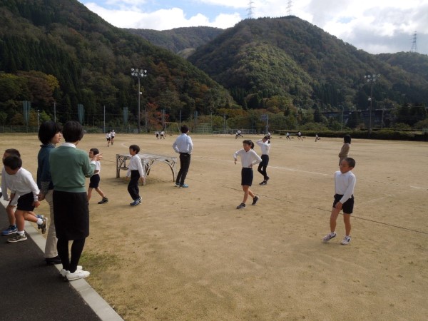3分間、きっちり走り回って、すっかり体が温まったころにタイムアップ!最後まで逃げ切ったのは1・2年生が多かったようです!お見事! そしてケーのみなさん、ご苦労さま!!