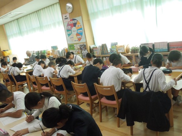 その最終日の朝読書は、先生たちが各教室に出向いて読み聞かせをする「おはなしキャラバン」が開催されました。