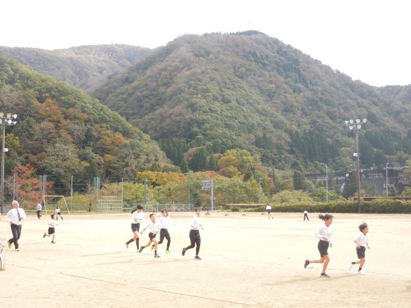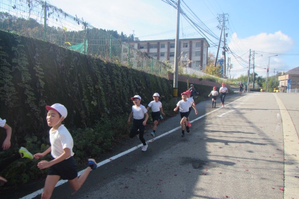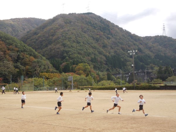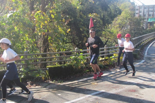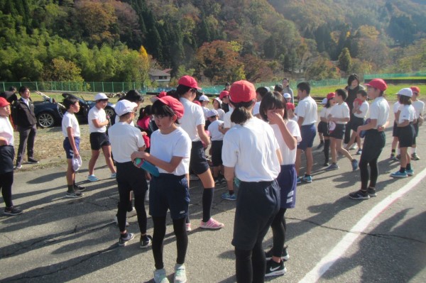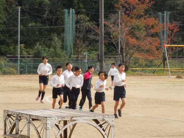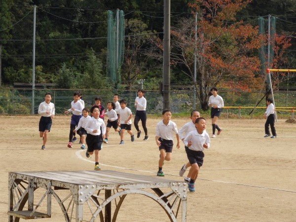 全校リレー、4チームそれぞれ「最後まで全力をつくし」て走りきりました。