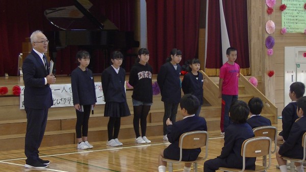 最後に、今回で6年生と過ごす児童集会が最後ということで、3人の「卒業生」たちから「在校生」たちに、集会活動についてのふりかえりと、これからの集会活動への期待のメッセージをもらいました。