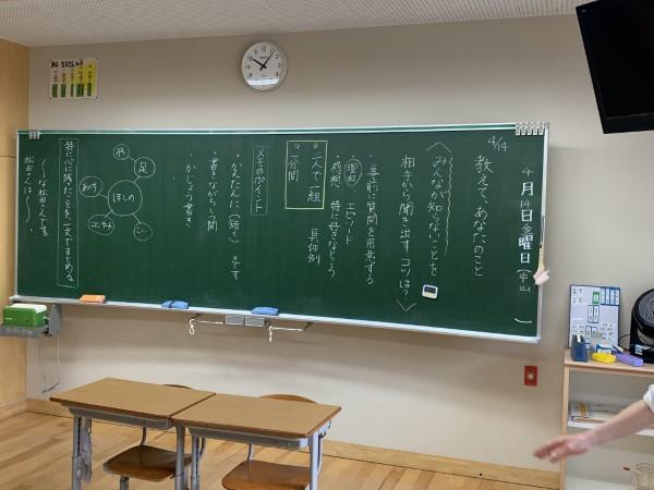2年生は国語の物語文の読み取り学習中。さっそく気づいたことを挙手して発表している様子が見えました。がんばってますねぇ!