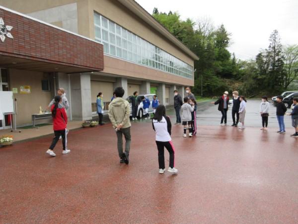 河内小のコンパクトな校舎では隠れるところを探すのも大変なのですが、なんと!とみんなが驚く隠れ場所を見つけて時間内に見つからなかった人も2名いました。すごいですね。意気揚々と体育館に引き上げてくる2人、はたしてだれだったでしょうか?(^_^