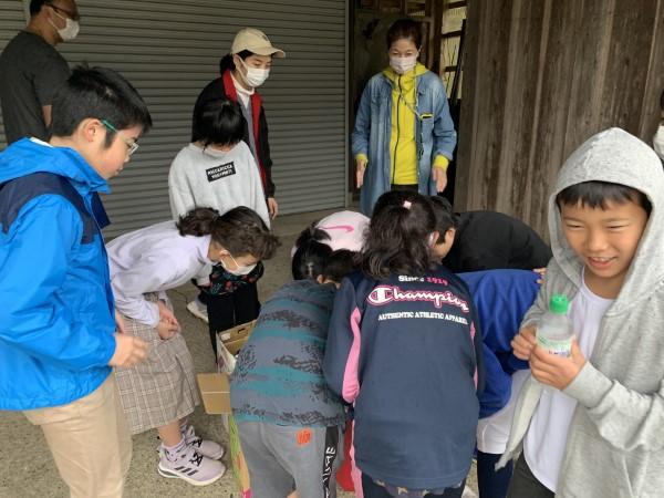 続いては3・4年生。途中の道でも元気いっぱい、加藤先生の周辺の見どころ解説を聞きながら元気に歩いていました。