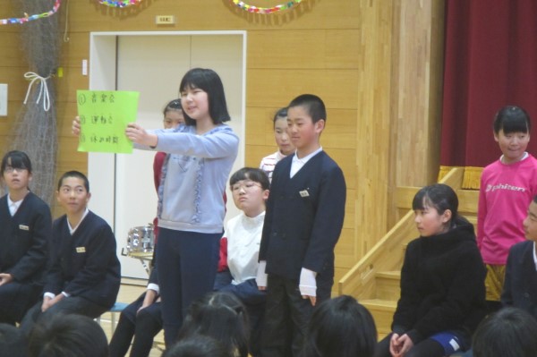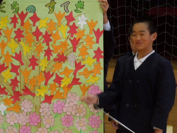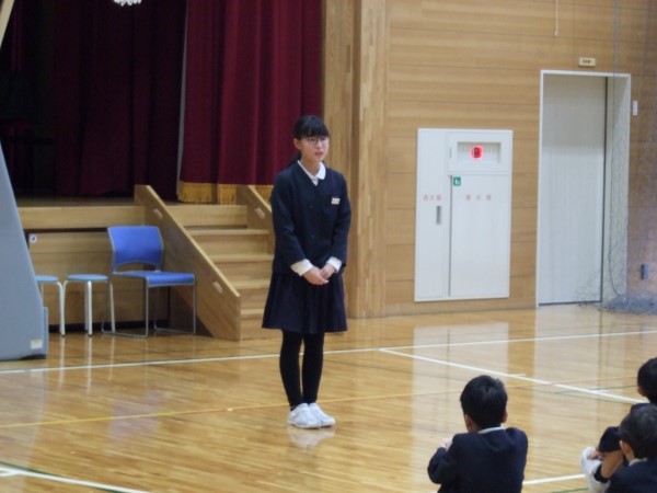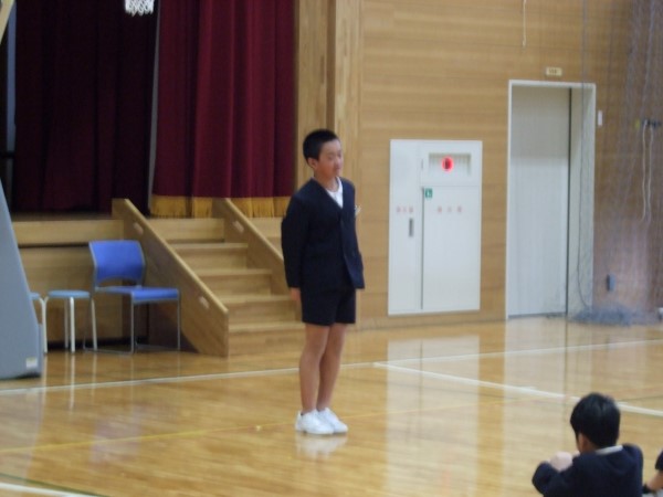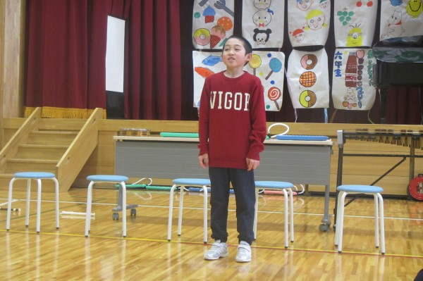 今日の総合司会は、4年生のSさん。バシッと力のこもった声が出ています。
