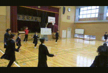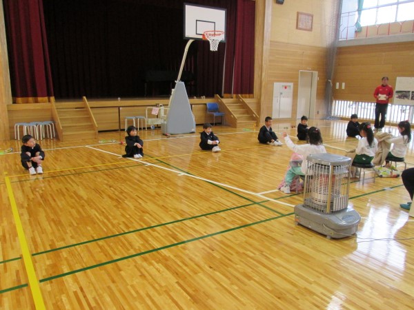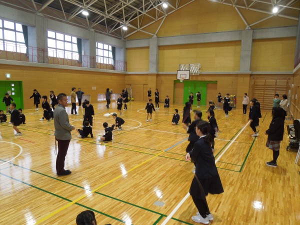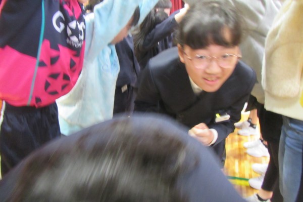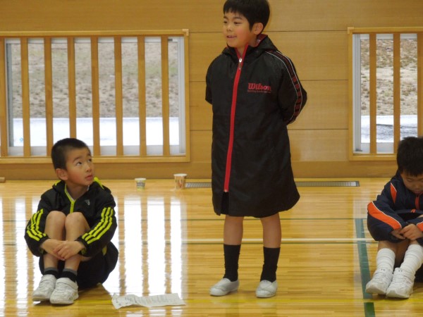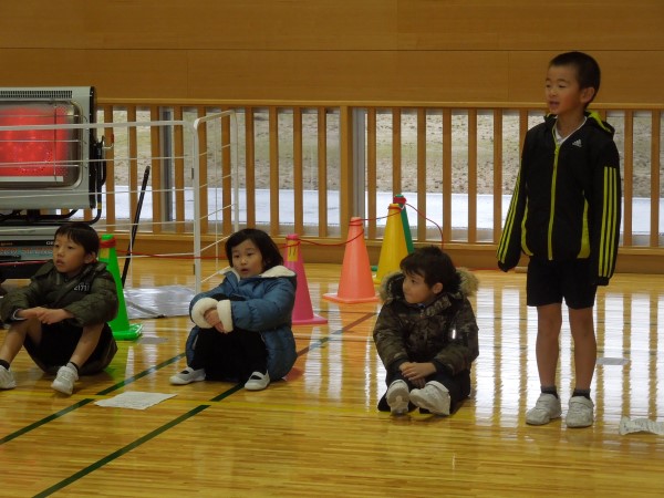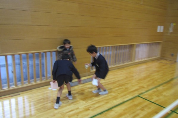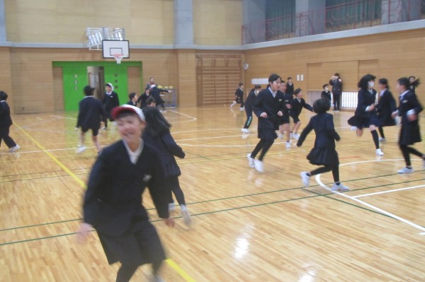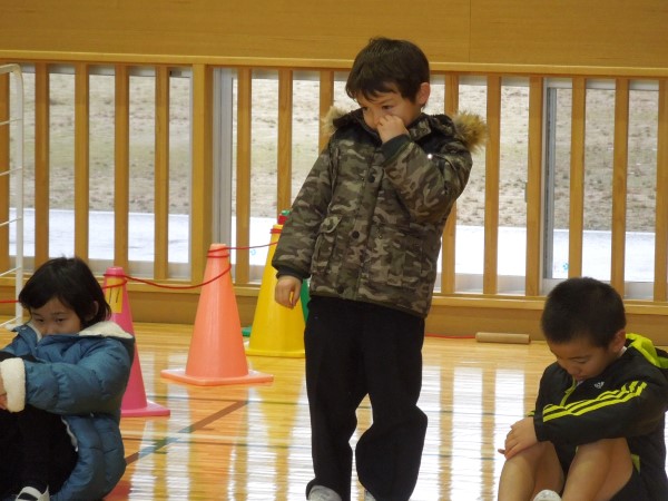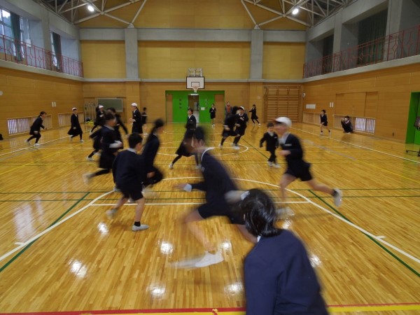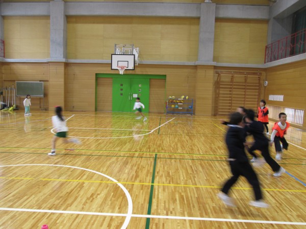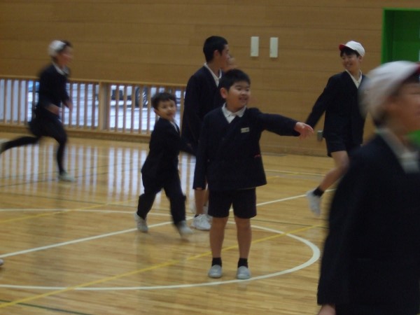3分間、きっちり走り回って、すっかり体が温まったころにタイムアップ!最後まで逃げ切ったのは1・2年生が多かったようです!お見事! そしてケーのみなさん、ご苦労さま!!
