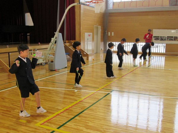 なわとびを披露する1年生。